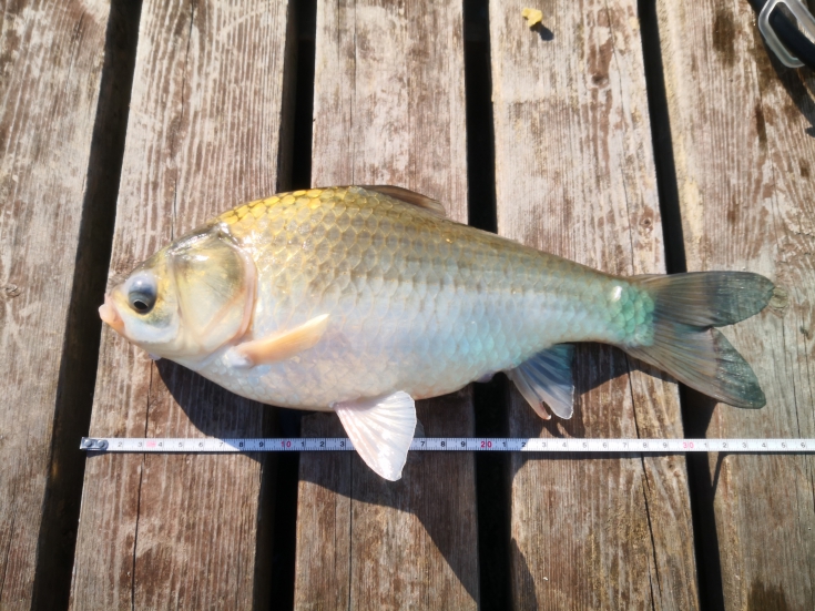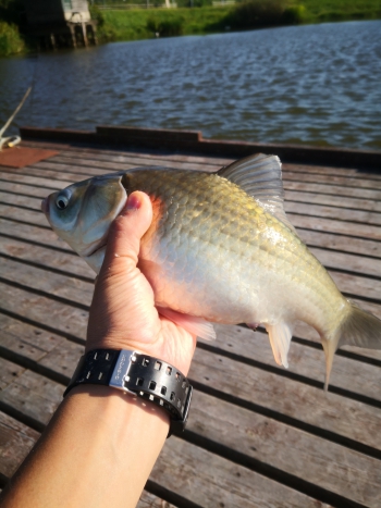 エサ打ち小一時間はジャミばっかりの状態でしたが、13時前にスレで21センチ位のへら鮒が来ました