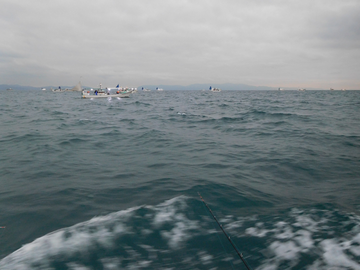 5時30分に出船し、20分程で洲本沖に着くと、既に釣り始めている船もありテンションも上がる!!