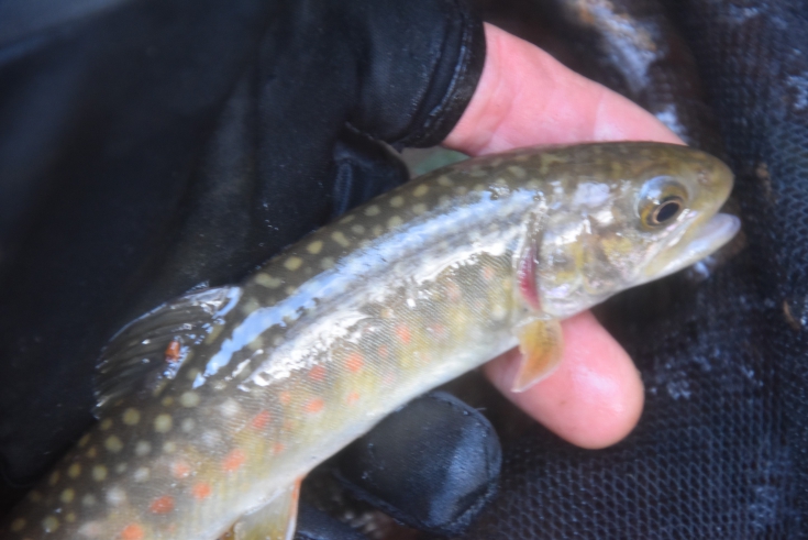 最上流の滝つぼエリアでは、ゆっくりと流れ筋を探るとイワナも姿を見せてくれました。