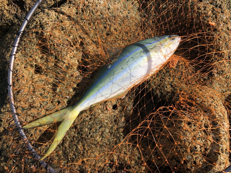 思った以上にエサ取り少なく釣りやすい状況!30cm弱の尾長グレが頻繁にサオを曲げてくれた。秋磯らしく青物のツムブリ・シマアジなども顔を見せてくれた。