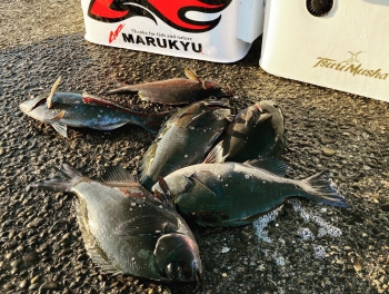 まだまだ海の中は夏磯、グレの他にイサキ・イスズミ・ダツ・ニザダイ・オヤビッ チャなど魚種多彩な魚釣りとなりました。