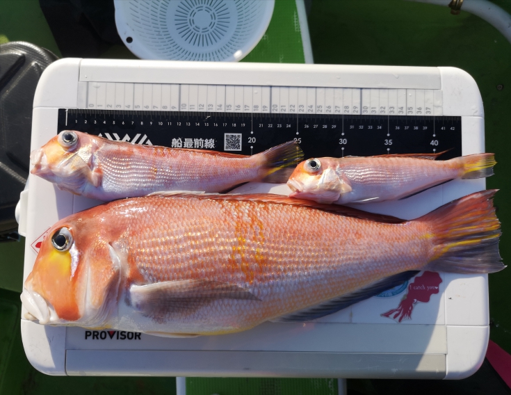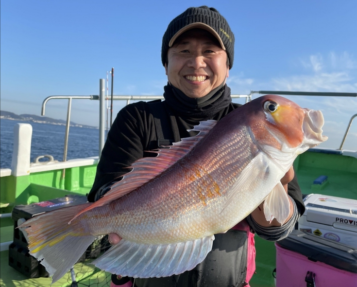 ●釣行日:2021年10月30日 ●お名前:みつ ●ポイント(場所):亀城根付近 ●使用商品名・号数:アマダイ3本仕掛 ●魚名:アマダイ ●全長:54 cm ●重量:1,9 kg