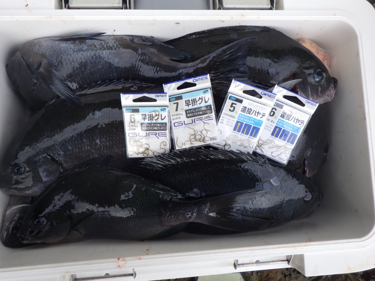 14時の納竿までに46cmの尾長グレを頭に40cmオーバーは5匹、30~38cmは多数釣ることが出来ました。