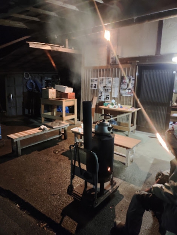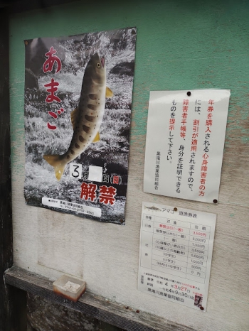 前日にポイントの下見を済ませ夜通し遊漁券を販売、接待されている辻本勝司漁業組合長宅でコーヒーをごちそうになりながら、アマゴの育成状況などを伺いワクワクして解禁まで時間を過ごす。