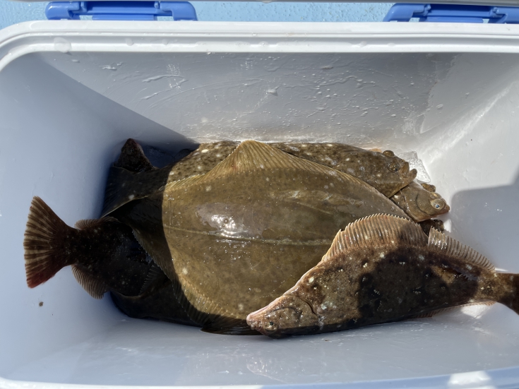 仙台湾では昔に比べて釣れる枚数が減り当日もトップで20枚と厳しい釣果でしたが、40upのマコガレイやイシガレイも混ざり楽しい釣行でした。