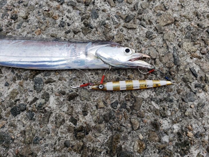 夕まずめ狙いのタチウオ釣行では明るい時間で撃投レベル、薄暗くなればワインド、完全に日が落ちたらテンヤと切り替えていくパターンです。