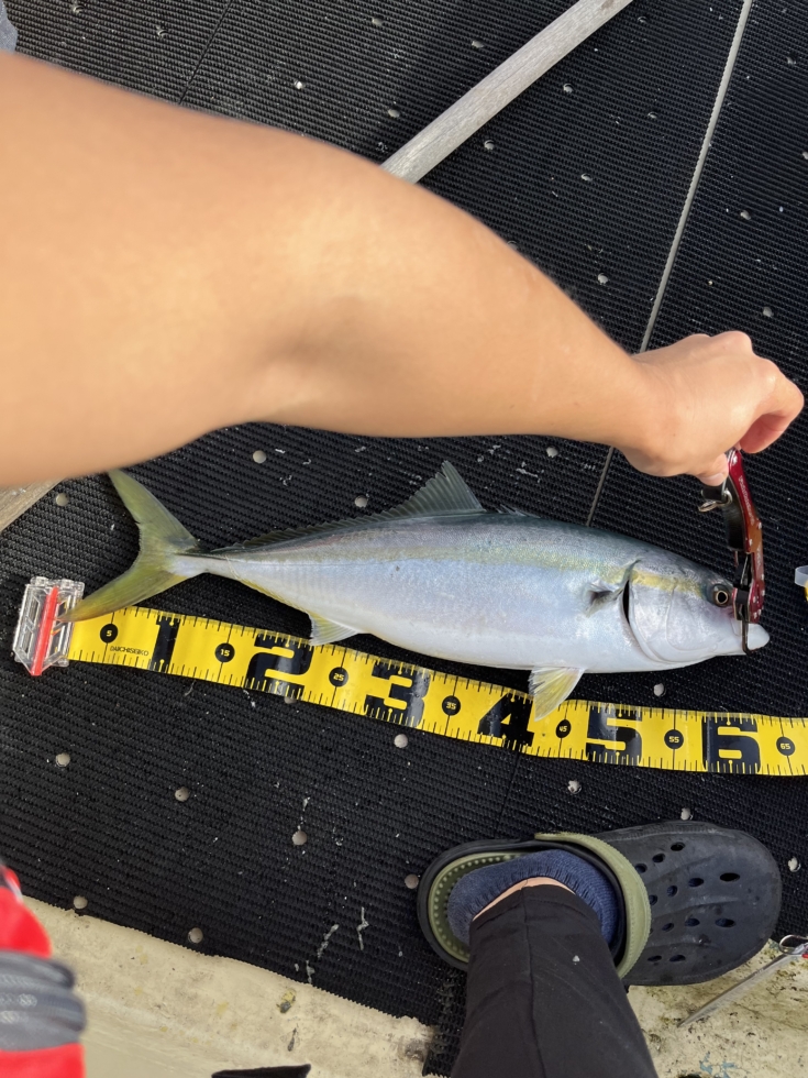 寝不足と過労で酔いながら釣りしていたので写真を残すのもやっとでルアーが写っていない状態ですが撃投ジグレベル130gシルバーゼブラで釣れました♪結果、全部で3本釣れました♪