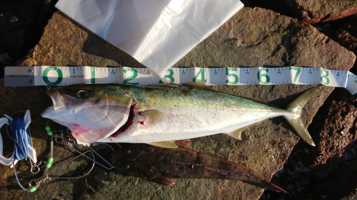 静ヘッド20gにシャッドワームを付けて早めのピッチでアベレージのマゴチが釣れました。