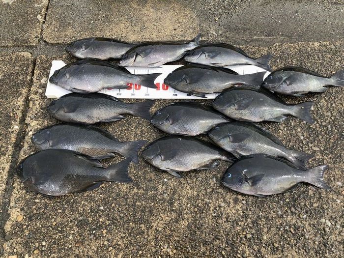 終わってみれば全員二桁釣果で、グレ30~41cmを55枚と大爆釣!!!35cm以下はリリース、贅沢な釣りを楽しんだ一日となった。