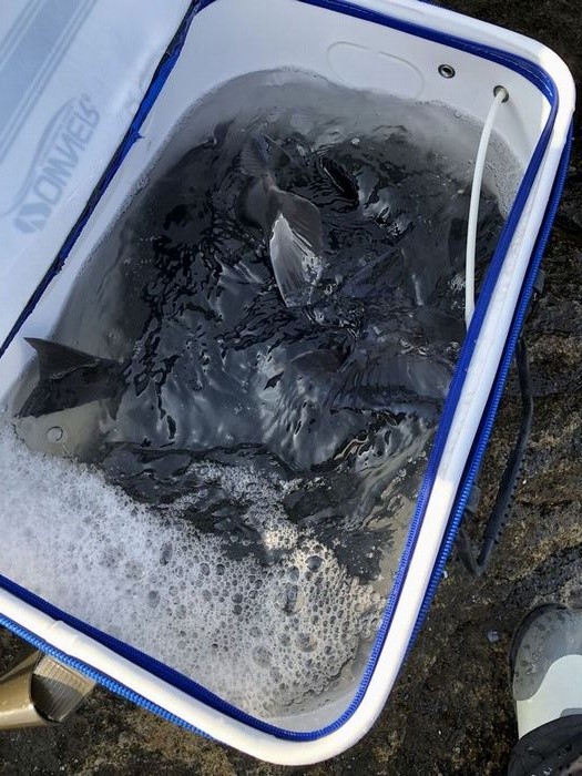 ●使用商品名:タックル:磯サオ:1.25号、ライン:ザイト磯の白2号、ハリス:ザイト磯フロロ1.75~2.5号、ハリ:ザ・ROCK6~7号、身軽グレ6~7号 フカセパーツ:ウキ止めウーリー(ピンク)、スクラム潮受ロング(ホワイト)