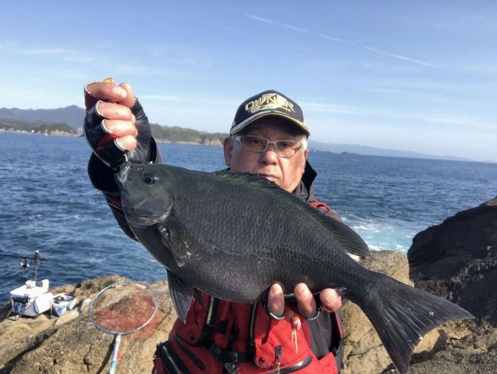 寒グレも終盤戦と言うことで通いなれたホームのひとつ、宇久井の沖磯に良型グレを求めて丸山氏、岡崎氏の3人で3月4日に釣行した。