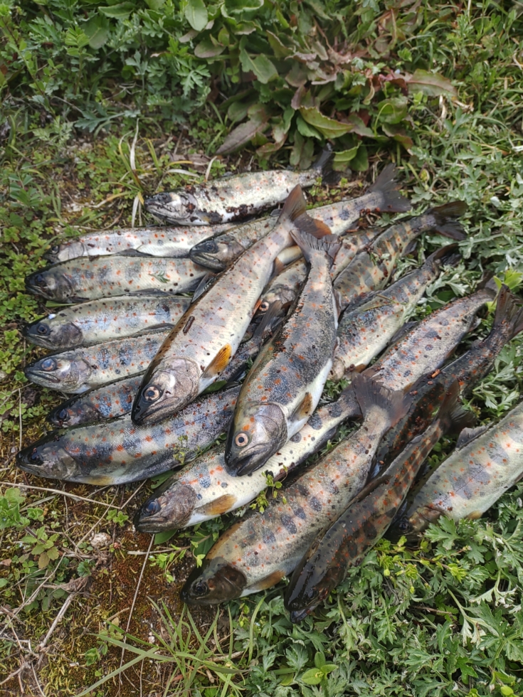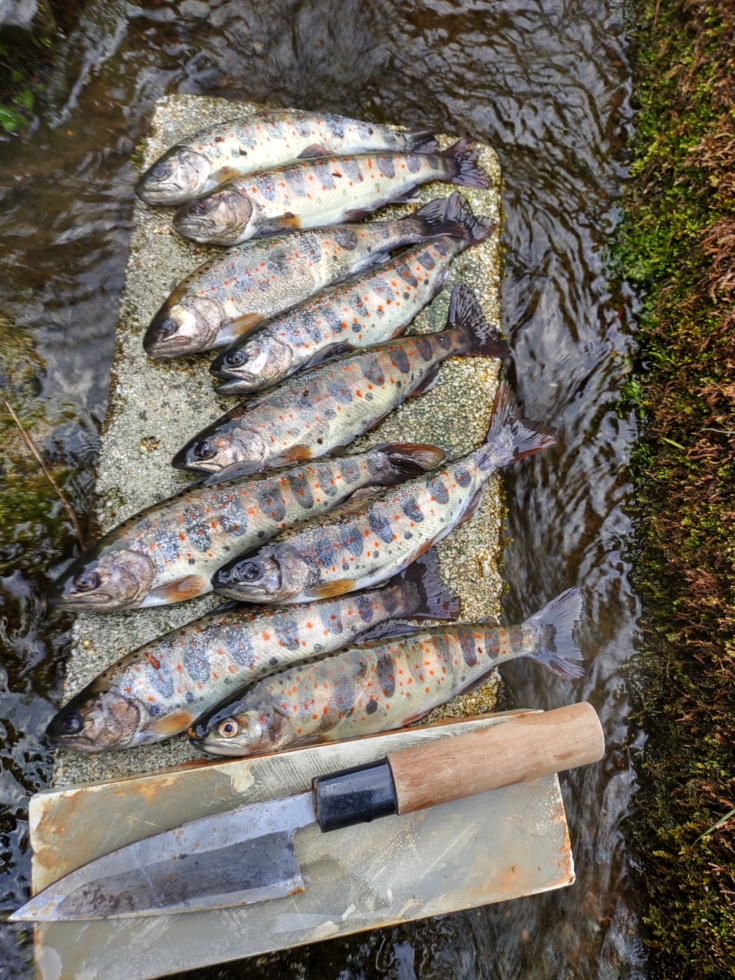 直前放流ではないので魚が瀬に散っており爆釣とはいきませんでしたが、家族分は十分キープ出来ました。