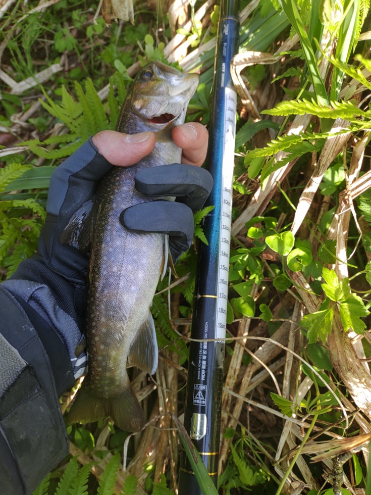 渓流魚2匹合計の長寸で競われるので3匹で1級ポイントに見切りをつけ釣り歩き。