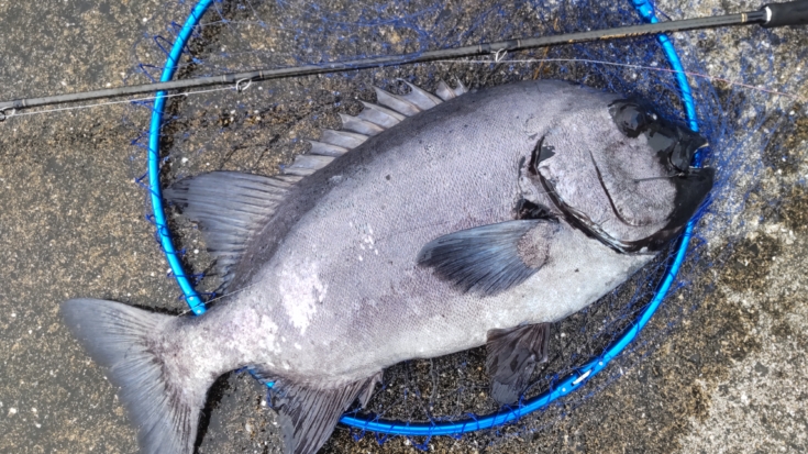 着底後の捕食はイシダイが下を向いて鈎を吸い込むので力強いアワセで掛けに行きますが、フォール中の捕食は下からだったり横からだったりするのでアワセ方を間違えるとアワセ切れや鈎がハズレ易くなってしまいます。