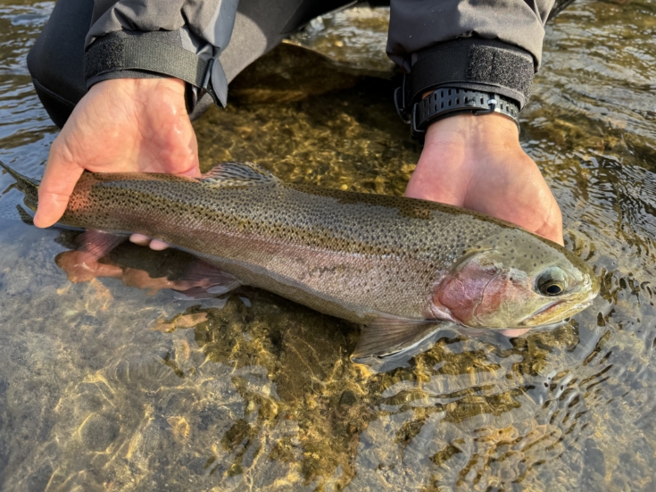 2週間前に初めての虹鱒を掛けてから、強烈な引きが忘れられず、更なるサイズアップを目指して釣友と犀川に向かった。