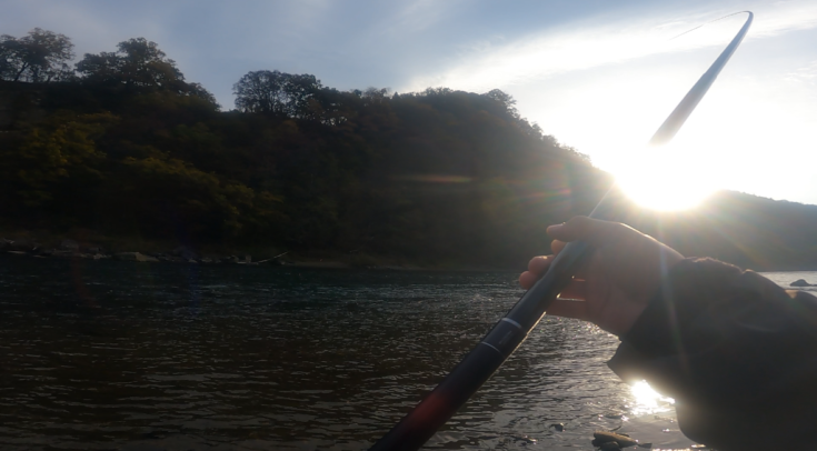 本流キングの10号を選択し、まずは定番のマグロを手前の緩やかな流れからゆっくりと通して探るも、魚信は遠い。