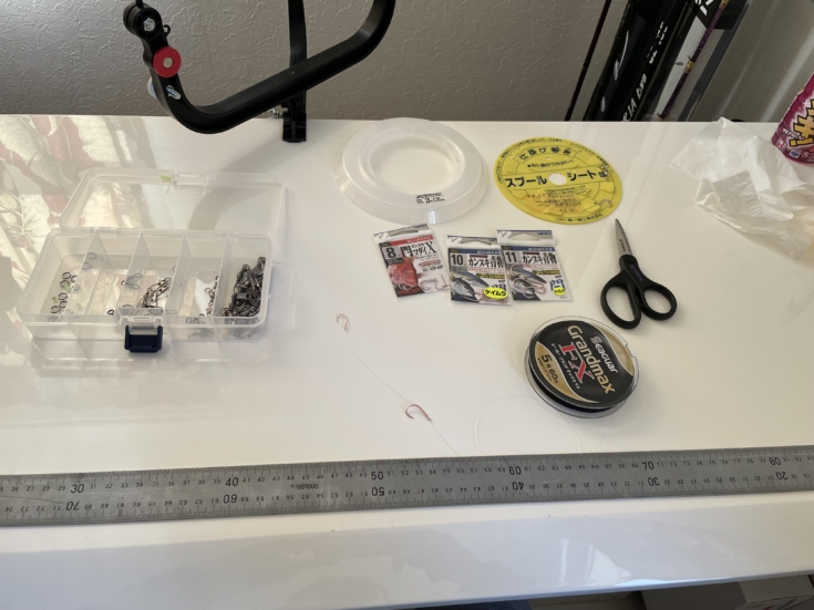 ●使用商品名・号数(使用鈎・仕掛・ルアーなど) PE2号 ハリス5号 親針カンヌキ青物11号 孫針カンヌキマダイX