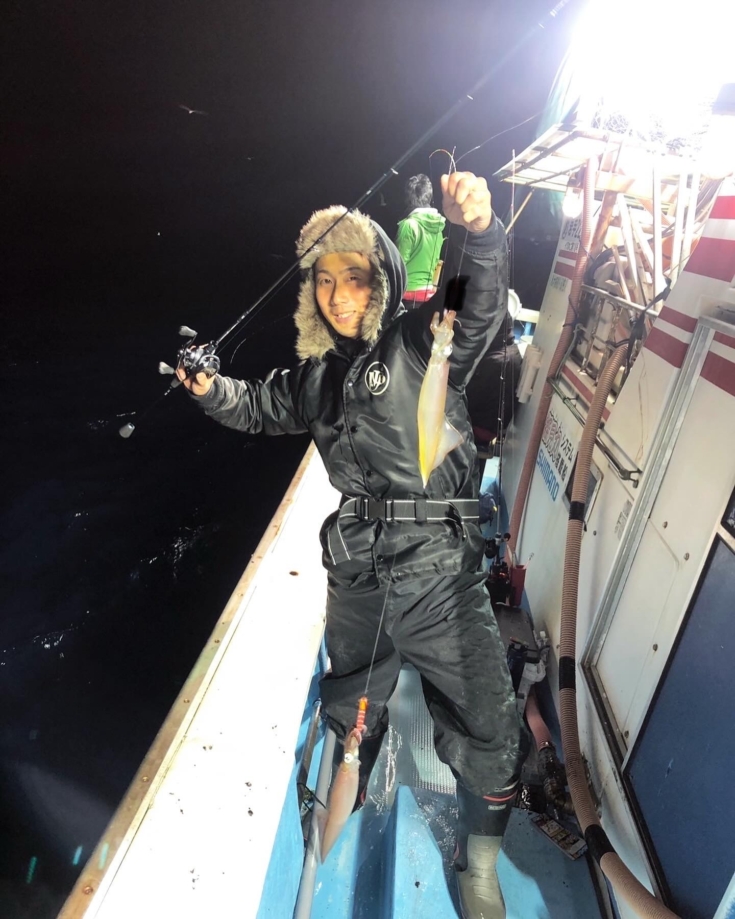 サバが居ないであろうボトムから上20mまでに絞って探っていたらようやくヤリイカっぽい当たり!