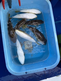 上がってきたのは20センチ超えの良いサイズのショウサイフグ!!