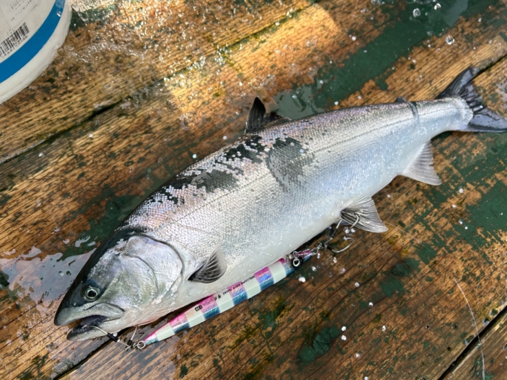 各社様々なメーカーのジグが参入して選択肢が増えるも、どのアイテムが一番とも言えないほどにその日の状況はどんどん変わり読めないのがサクラマスジギングの醍醐味に感じます。今回様々使い回した中でもエリアで人気と呼ばれるアイテムに引けを取らない反応を出してくれた撃投ジグレベル。