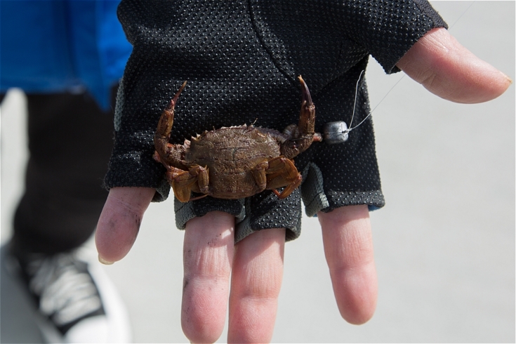 虫ヘッドにアオイソメを付けて探ると、ワタリガニの仲間やメバル等もヒット。