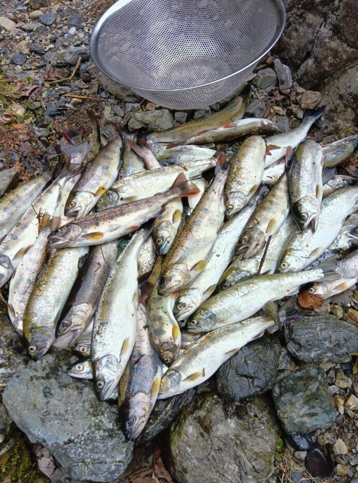 今年は小型も混ぜて放流されている様で、それらは全てリリースしたが20㎝以上のキープサイズが50匹を超えたところで納竿とした。