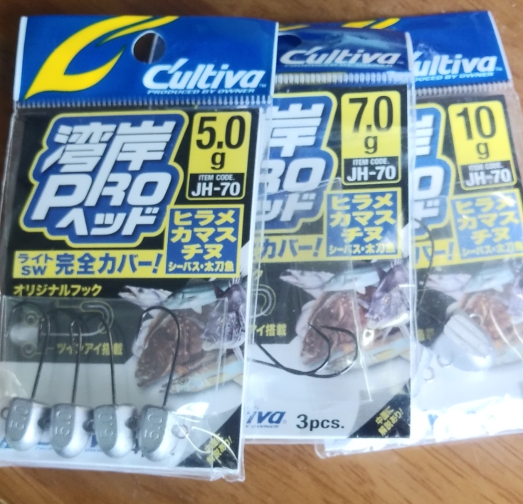 愛用している湾岸PROヘッド(5、7、10g)は、ツインアイ搭載のためアシストフックの搭載が容易であること、ワームキーパー部分がないので、ワームのシルエットがあまり変わらないことが魅力です。そして、5、7、10gと細かなバリエーションで、現場で微調整がしやすいのがうれしいです。