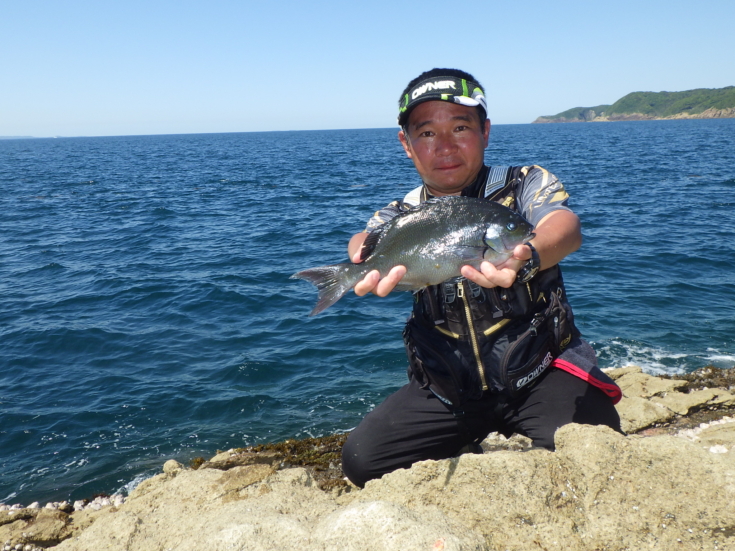 日が高くなり、遠投ハヤテも5号に落とすと、鈎にオキアミの殻だけ残ってきました。これでさらに鈎を遠投ハヤテ4号まで落とすと、道糸がぶっ飛ぶアタリが来ました。慎重なやり取りで仕留めたのは41cmの尾長グレ。さらに同型を1尾追加して納竿となりました。