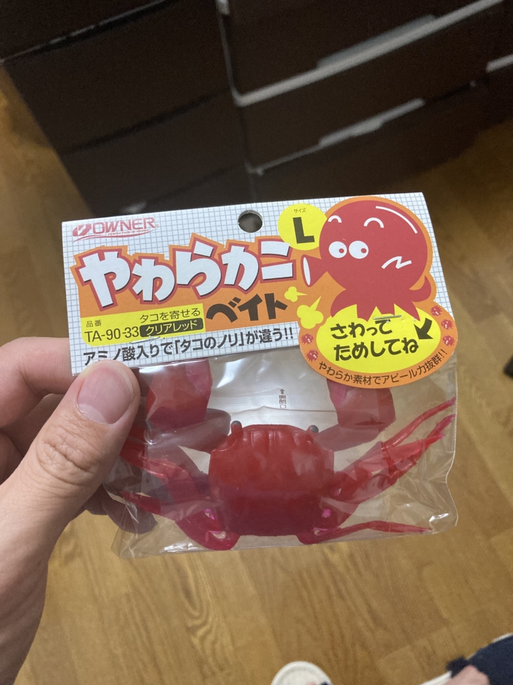 明石の蛸釣りルールも厳しくなり針は180度、生餌を巻くのは禁止となりました!少しでも数を釣りたい私は餌に近いカニワーム(やわらカニベイト)を入手して釣行に挑みました!