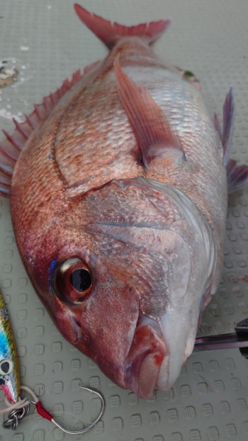 ラストのポイントでゲストの良型マダイ。三陸岩手では中々貴重な魚なので船中かなり盛り上がりました笑。