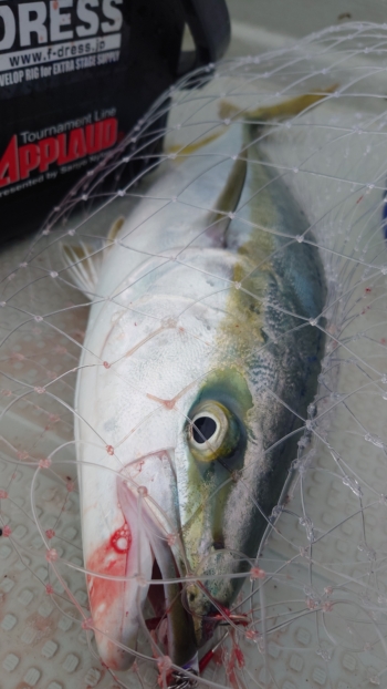 水深60~80mメインの釣行にて、この日はボトムから10~15m付近の反応が良く、青物がぽつぽつ。