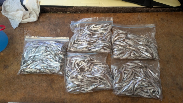 この日の魚探の映りはイマイチで『筋』があちこちにあるだけで、巨大なまとまった群れは来ませんでした。