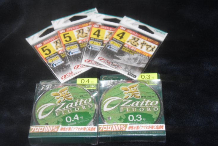 天上糸・自作遊動天上糸ザイト渓流フロロ0.6号、水中ラインザイト渓流フロロ0.3、0.4号、ハリカッパマタギ4、5号