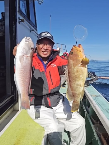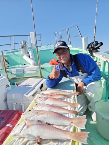 今日も美味しい魚! 激旨い魚! を求めて「白アマダイ釣り」乗合船に乗船しました。西の風3~2m ベタ凪 第1投 いきなり良型白アマダイ その後ボツボツとアタリ 良型白アマダイ~小型10匹 そして50㎝イトヨリダイ、良型アオハタ、マアジ、ゴマサバ、サバフグ多数でした~アタリの多い釣りは楽しいですね~