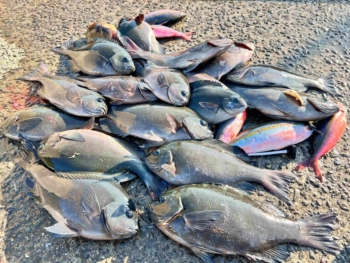 中々食いが渋く、口を使ってくれなかったが身軽グレ4号にしたらしっかりとした当たりが出てくれた。軽くゆっくりとしたフォールだと食ってくれるので、そこからは大きな仕掛けを変えることなくポロポロ拾えることができ、楽しい初釣りとなった。