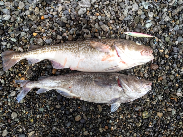 このエリアにはGT(ジャイアントタラ)が居ることは知っていたのでしつこく狙っていると、同船の友人が良型のタラをゲット。