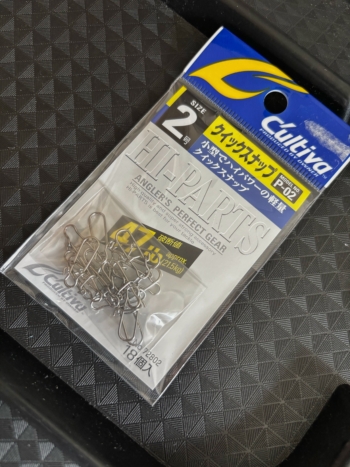 カルディバのクイックスナップ(サイズ2号)を使ってインショアロックフィッシュへ行ってきました!仕掛けの交換が簡単なのでテンポ良くローテーションが出来ます。ベイトタックルを使った引っ張り合いの釣りをしても全然変形もしないので安心して使えました。小さくても強いスナップを探してる方は是非使って欲しいと思いました。
