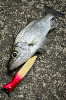 自作ルアーでやっと本命のヒラセイゴをゲット●釣行日 2025年4月13日 ●お名前 深川成一郎 ●ポイント(場所) 鹿児島県鹿児島市 ●使用商品名・号数(使用鈎・仕掛・ルアーなど) STX-38 #6 最強根巻糸 中 ●魚名 ヒラセイゴ ●全長 30 cm...