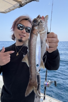 志摩沖水深340mでクロムツ35cm●釣行日 2025年4月17日 ●お名前 がっしー ●ポイント(場所) 志摩沖 ●使用商品名・号数(使用鈎・仕掛・ルアーなど) ショートチェイサー9/0 ●魚名 クロムツ ●全長 35 cm ●重量 1000 g ●コメ...