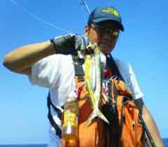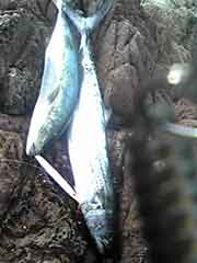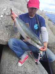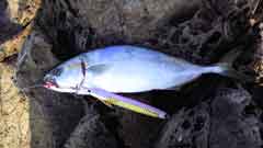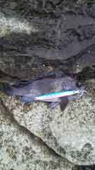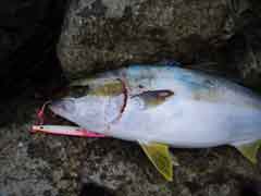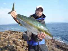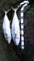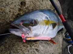 11月にもなりやっと秋本番! 待ちに待ったヒラマサのハイシーズンの到来です。 思えば昨年の隠岐釣行は2回とも坊主、しかも隣でメンバーに91センチのヒラマサを釣られ、その後も島根半島の地磯でひたすら坊主が続き1年半以上の大スランプ中。 今回は必ず釣ると心に誓い、11月7日、8日でいざ隠岐へ! 上がったのは大森の舟島。 日の出を迎え、いざキャスト開始! しかし、ワカナ、ワカナ、たまにハマチそしてまたワカナ。ダブルフックにすれば2匹で上がってくる。三人でトータル3桁はいきましたね。でも9割はポッイ。 午前中に70センチのヒラマサを一本捕りようやく大スランプ脱出。 その後はあたりも無くお昼ねタイム。 2時半に目が覚め・・・寝すぎた!! 慌ててキャスト開始。 すると午後1投目でガツン! 一瞬で分かる桁違いの引き。 何とか無事にランディングに成功したのは自己ベスト更新の88センチのヒラマサでした。その後、72センチを一本追加し、3人で合計5本捕ることが出来ました。 やっぱり隠岐はショアジギンガーのパラダイスですね。