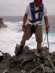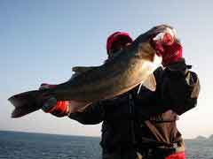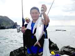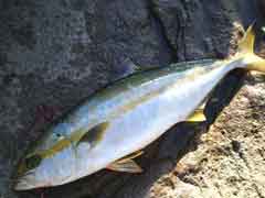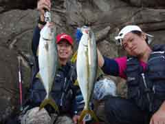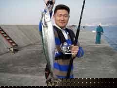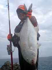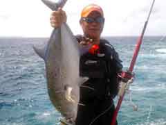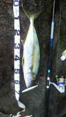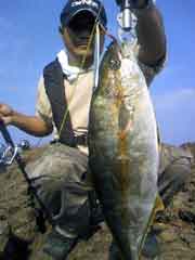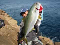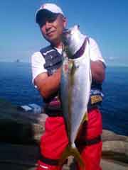 昼一で磯に上がった開始早々、中山さんに体高のあるヒラマサがヒット。