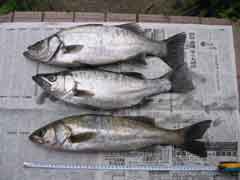 < ヒラスズキ51センチ 46センチ マルスズキ54センチ