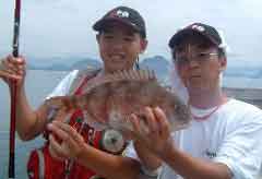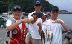 西伊豆・石部港 1学期も終了し、夏休みに入り、20〜21日と釣行。21日 型は小さいものの、カイズクラスがヒット。