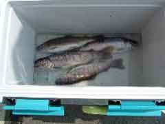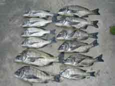 フカセ釣りや紀州釣りでクロダイを狙ったところ、キビレ・カイズなど型は小さいが、1人・6〜7尾ヒット。