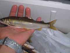 | キスが3匹、ベラ6匹、トラギス1匹です。キスは20〜23cmと良型だったのですが真昼間ということもあり食いが非常に渋く、アタリがありませんでした。魚も夏バテでしょうか。針はジャストキス6号でしたが、良型のキスもしっかり針掛かりしてました。 |