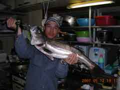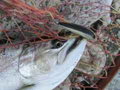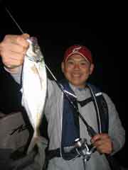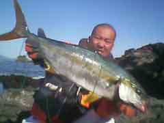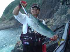 すると、「ゴン!」とヒット!保険用のタックルでお土産のハマチをゲットしましたv(^_^)v