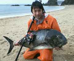 5月1日03:40、沖縄県国頭村奥(通称ユッピ浜)にて、15分のファイトの末、119.3cm、23.9kgのロウニンアジ(沖縄方言名:カマジーガーラ)を釣り上げることが出来ました。