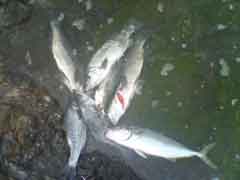 風が強く釣果が寂しいのではと、心配されましたがほとんどの選手が魚を提出。中には30cm近い大型も数匹釣れていて大いに盛り上がり大会もクリーンアップの方も大成功でした。 |