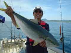 これから夏シーズンになると大型カンパチ、アラが狙える。詳しくは野間池港、智奈津丸まで