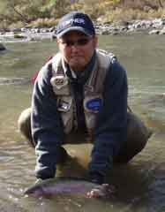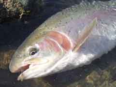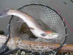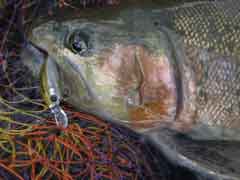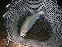地元、天竜川の本流に開設されているルアーフライ専用区。2度目の放流から2週間が経過した12月6日も、外気の急激な冷え込みの影響を受けることなく、水面下の活性は非常に良好だった。特にこの日最後のヒットは爽快そのもの。水深の浅いボサ際の出来事だったから、「ゴボっ」というミノーを喰う瞬間の音もしっかりと耳に届き、興奮は倍増した。結構強引なやり取りの末にランディングしたのは49cm。おまけにこの美形である。